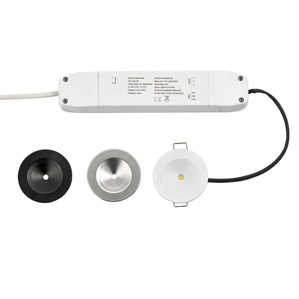 This unit comprises of 1 x High Output 2W LED. The dual status LED illuminates in Green whilst charging and converts to a 120 lumens High Output 6500K bright white LED when Power is Lost. Ideal for corridors, stairwells and a variety of commercial and public areas where a concentrated emergency light is required. Supplied complete with Aluminium, white and black bezels. All-in-one inverter and battery pack. 120 degree beam angle. 120 lumens. Non-maintained use only.